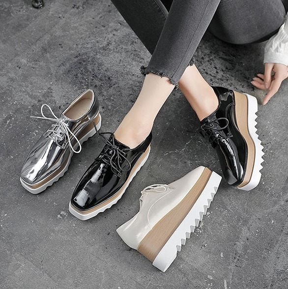 ☆厚底で安定感があり☆♪3色展開♪厚底スリッポンパンプス 靴 レディース シューズ22~24.5cm ローファー通勤用 仕事レースアップブラック黒ベージュシルバー可愛い おしゃれ 美足 脚長