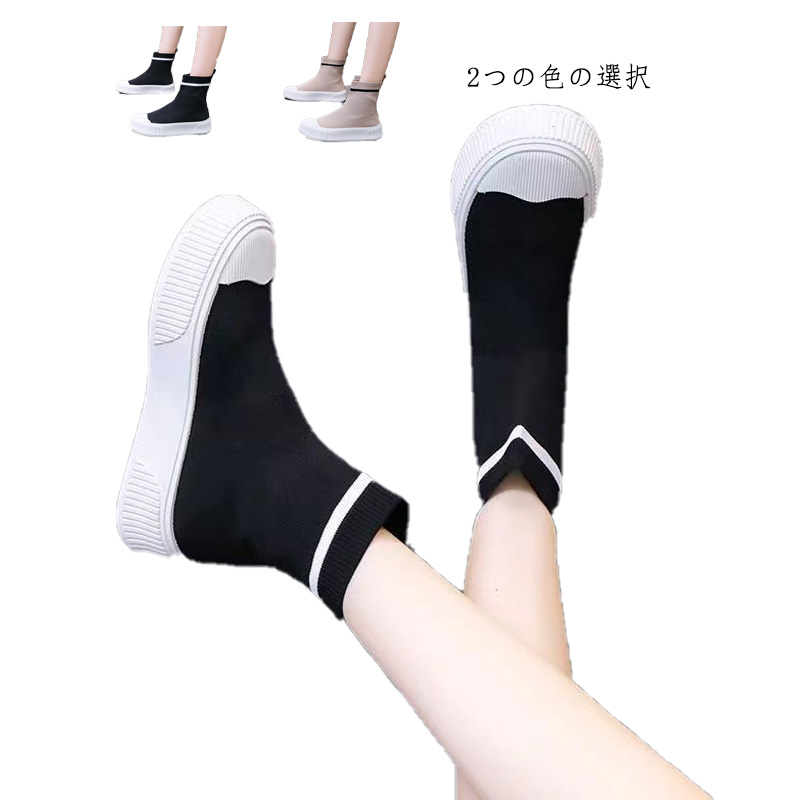 スニーカーョートブーツ 履きやすい ニットソックス 厚底 軽量 ストレッチ ニットソックス エアクッション 厚底 ショートミドルブーツ