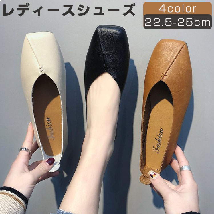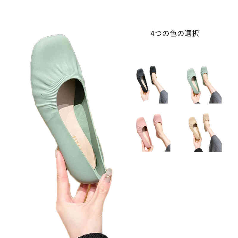 歩きやすい バレエシューズ シンプル レザー パンプス レディース ローヒール PU レザー ギャザー シューズ 靴 ぺたんこ スリッポン