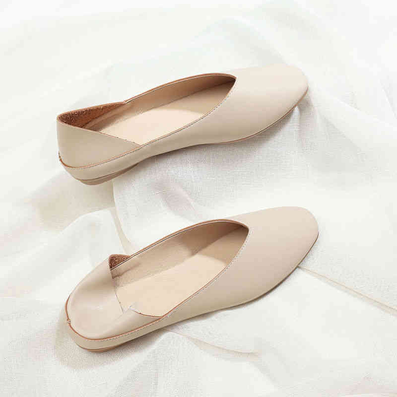 歩きやすい バレエシューズ シンプル レザー パンプス レディース ローヒール レザー ギャザー シューズ 靴 ぺたんこ スリッポン