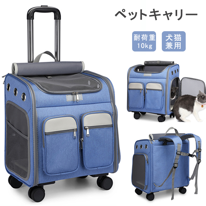 犬猫兼用のペットキャリーバッグ 3 キャスター付き 折り畳み 手提げ 両肩ショルダーペット ペットグッズ 犬用品 キャリーバッグ カート リュックキャリー
