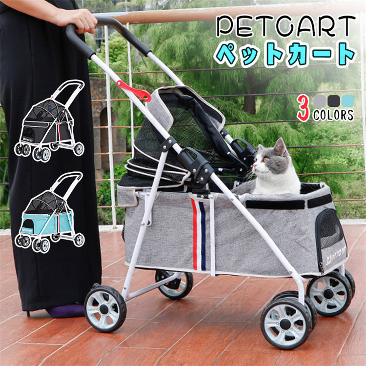 ペットカート ペット用 バギー 犬 キャリーカート 可視メッシュ窓 多機能 可視メッシュ窓 中型犬 猫 兼用 多頭用 折りたたみ 老犬 介護用 病院 防災 四輪360°回転 組み立て簡単 ドッグカート