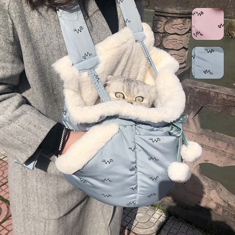 ペット 犬 猫 キャリー リュック バッグ リードフック付き ファー ボア キャリーバッグ ピンク ブルー ペット もこもこキャリーバッグ