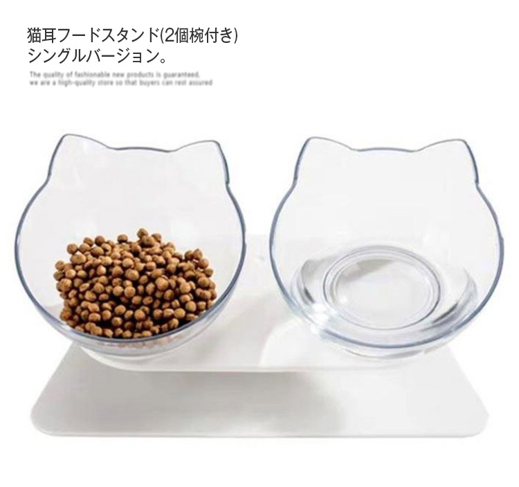 猫耳フードスタンド ペット食器 猫 フードボウル 2個セット スタンド 猫耳ボウル付き 猫 餌皿 エサ皿 食器 犬 食べやすい 傾斜 餌 エサ 餌入れ