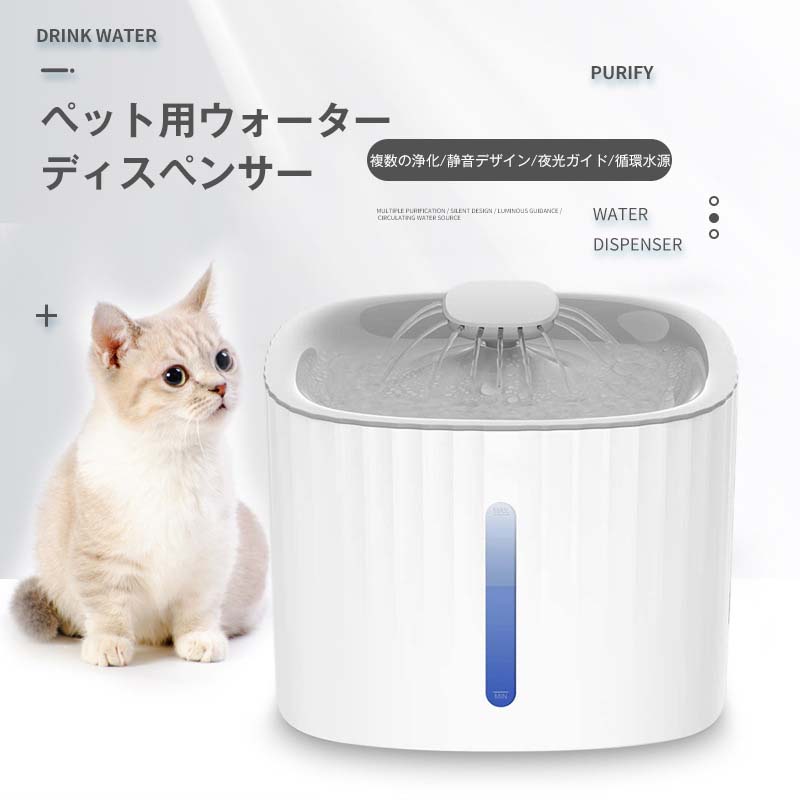 ペット給水器 犬 猫自動給水器 3大容量 水量目視可能 ライト付き 活性炭フィルター 静音 循環式 省エネ 犬猫用水飲み器 お留守番対応 花びら 給水機 健康 衛生 動物用