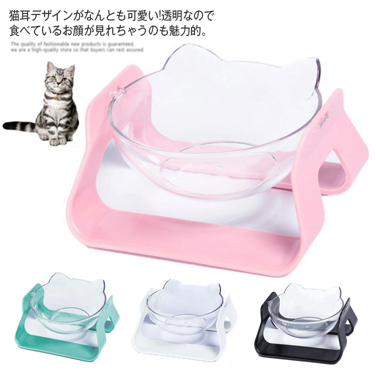 クリアボウル 食器 ボウル 食器台 犬猫 ペット 透明感が可愛い 食器 フードボウル 台座付き ペット用食器 フード入れ 水飲み器 傾斜 ウォーターボウル スタンド付き