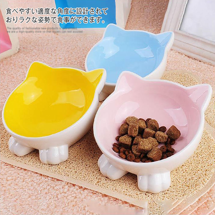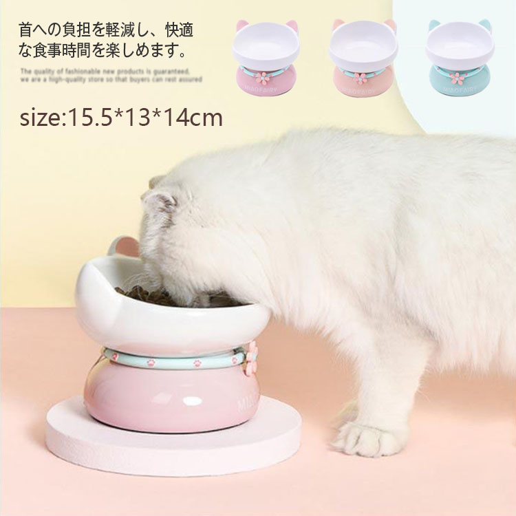 猫用食器 餌入れ フードボウル 猫 ペット 食器台 ペット用食器 ご飯皿 陶器 セラミック 斜め 高さ調整 水 スタンド 猫フードスタンド 猫の食器 餌皿