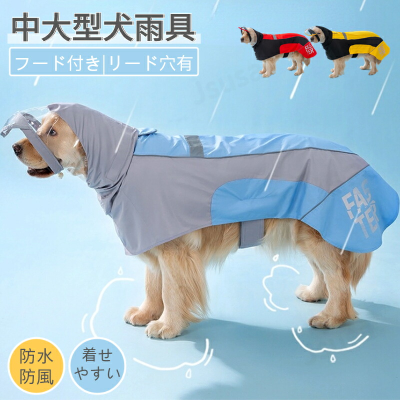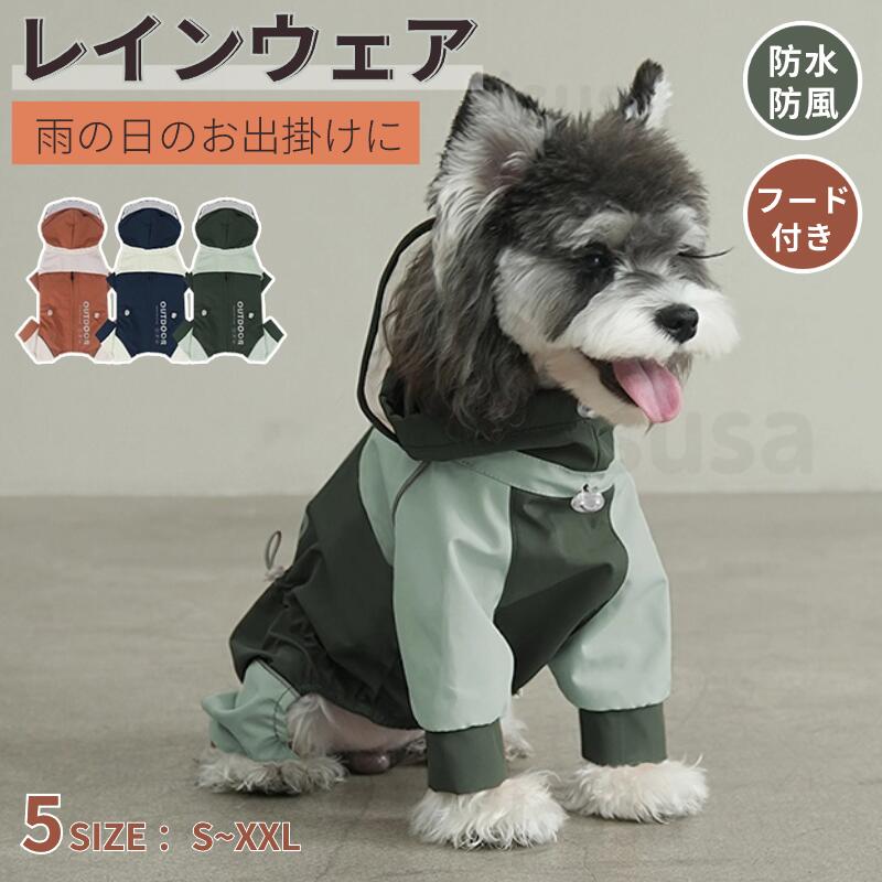 リードホールある ポンチョ 梅雨 雨具 S M L XL XXLサイズ 犬 レインコート レイングッズ 小型犬 カッパ フード付き