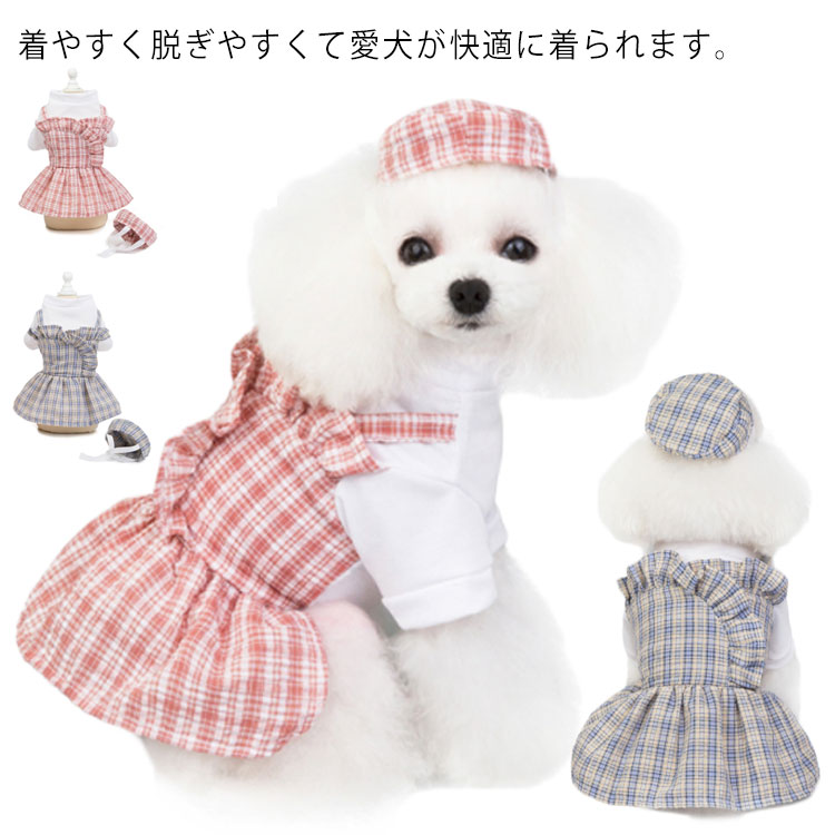 犬服 ワンピース スカート 秋服 小型犬 犬の服 ペット 猫 イヌ 女の子 トイプードル チワワ ダックス ドッグウェア おしゃれ かわいい チャック柄 制服風 犬用品 春服 秋物