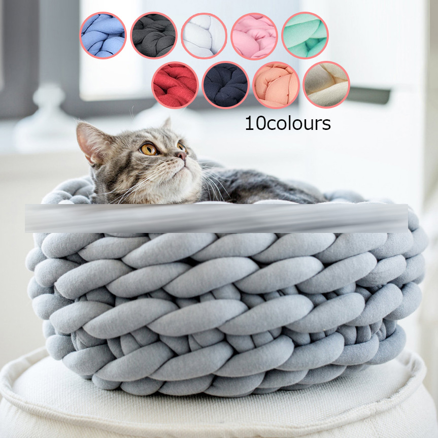 直径約30 ペットベッド チャンキーニット 編み 犬 ベッド 小型 中型犬用 猫用ベッド 犬用品 猫用品 ペット用品 クッション ペットソファ 洗える
