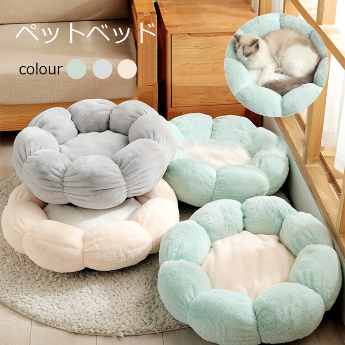 ペットベッド 円形フラワー 小型 中型 大型犬用 グリーン グレー ピンク 猫用ベッド 犬用品 猫用品 ペット用品 滑り止め クッション お花 ペットクッション おしゃれ 可愛い 暖かい 四季適用