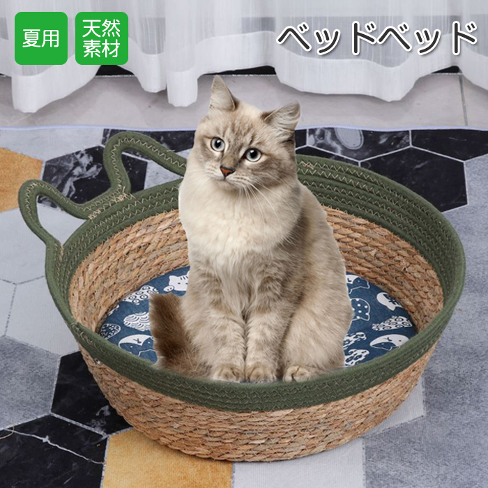 天然素材を採用したペットベッド クール 春夏 猫 蒲草 手編み 暑さ対策ペット ペットグッズ 犬用品 ベッド マット 寝具 ベッド カドラー