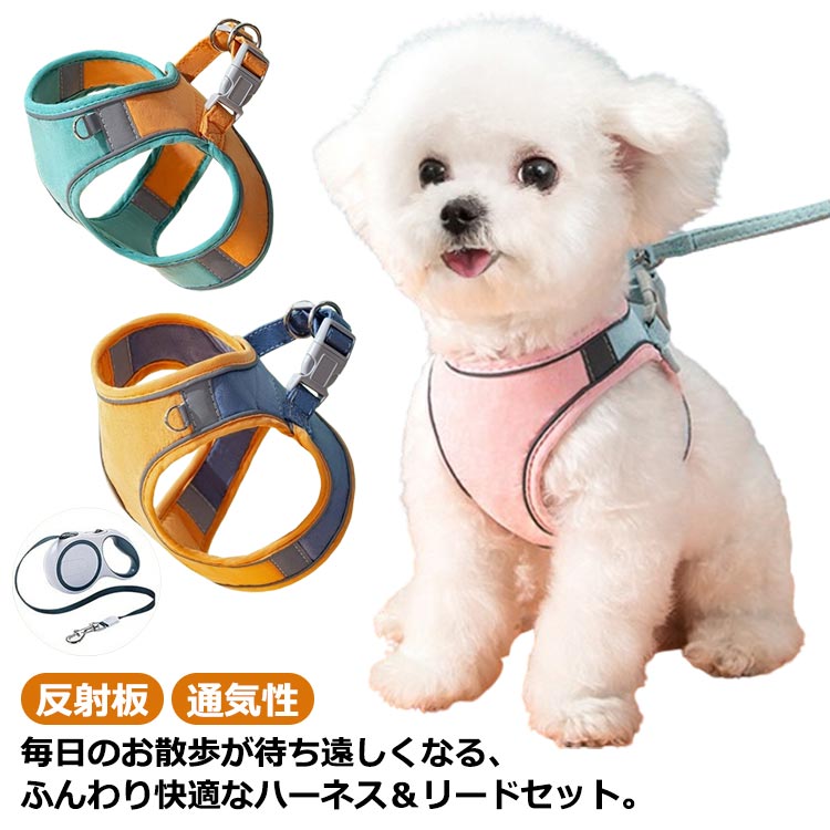 犬ハーネス ペット用 犬用 リード 胴輪 ハーネス 2点セット ソフトハーネス 散歩 おしゃれ かっこいい 可愛い かわいい イヌ用 いぬ用 猫用 ネコ用 ベスト風