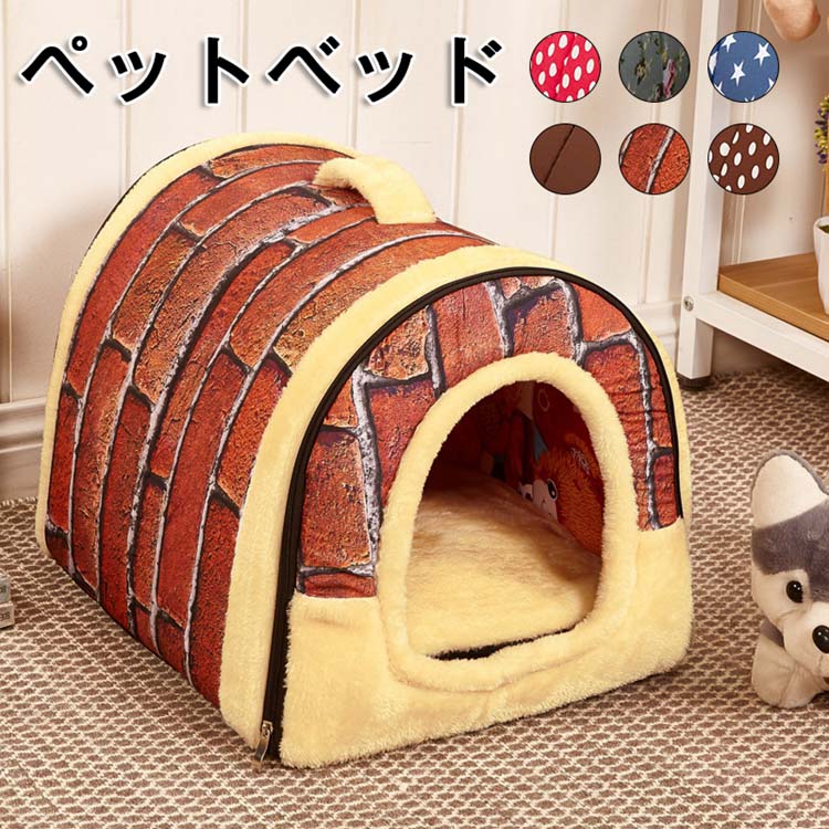 ペット用品 室内 ペットハウス ドーム型 春 秋 冬 犬 猫 小型ペット キャット 柄系 総柄 7 ワンサイズ 穴 収納 折りたたみ 2 洗える 自由に組み合わせ 犬ハウス
