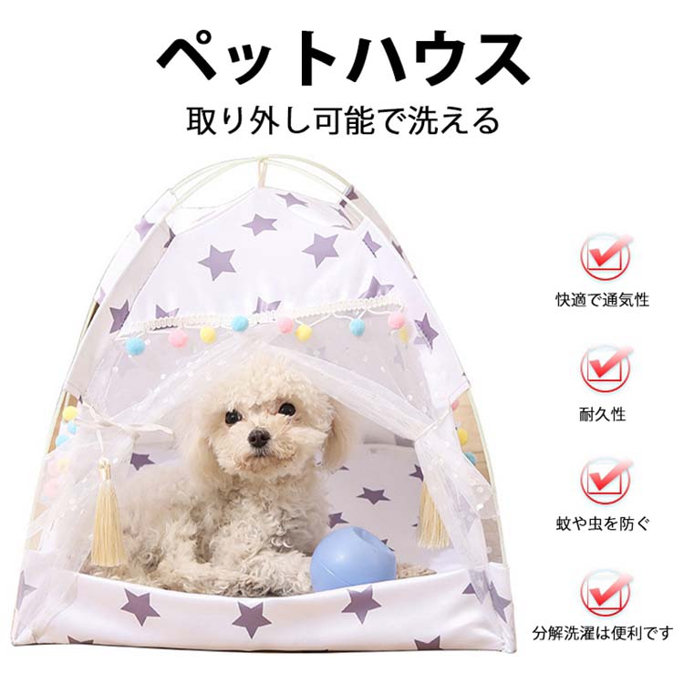 ペットハウス 夏 犬 猫 ペット テント ティピー テン 犬用 猫用 ペット用 室内 可愛い かわいい メッシュ カーテン付き 滑り止め 防蚊 防虫 インテリア 通気性