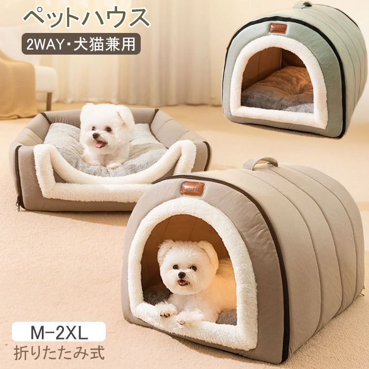 猫 犬用 ドーム型 暖かい ペットハウス ペットベッド 2WAY XS S M Lペット ペットグッズ 犬用品 犬小屋 ケージ ゲート ハウス 犬小屋
