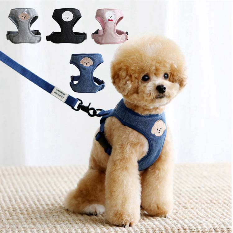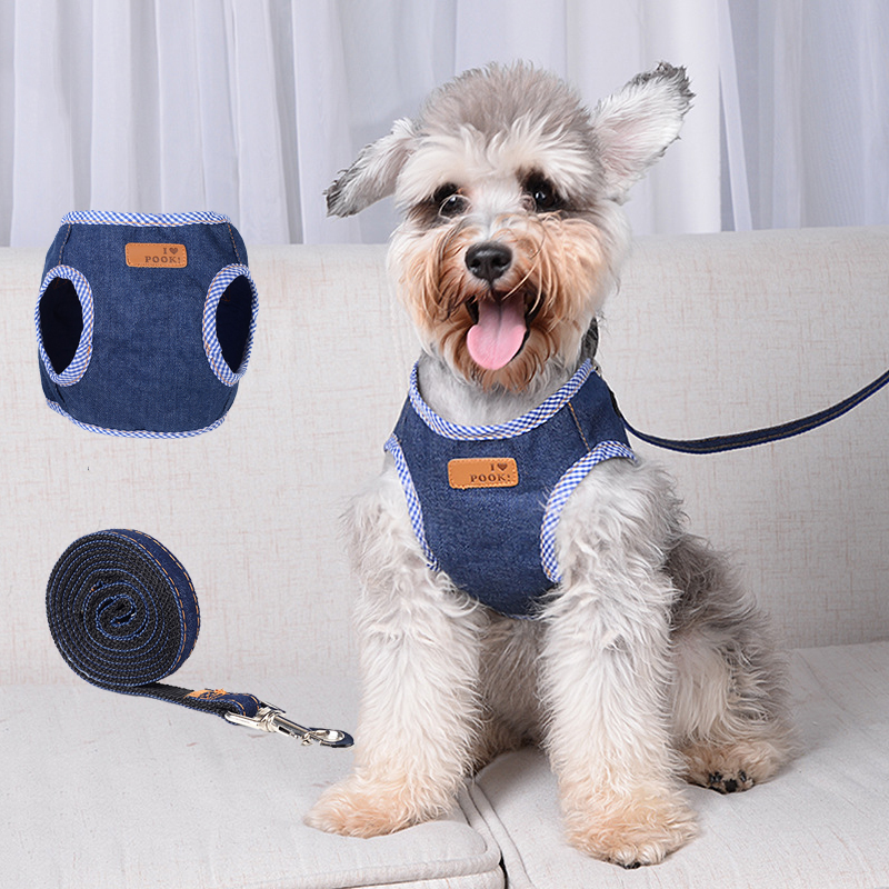 可愛いデニム製犬用ハーネス、ソフトで通気性いい お出かけ、お散歩にピッタリ ペット ペットグッズ 犬用品 首輪 胴輪 リード 胴輪 ハーネス
