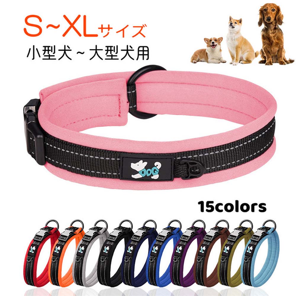 くびわ ナイロン製クッション首輪 おしゃれ 反射 丈夫 ペット首輪 S 犬用首輪 ペットグッズ ソフトパッド 犬の首輪 スポート 犬首輪 ネコ 中型犬 小型犬