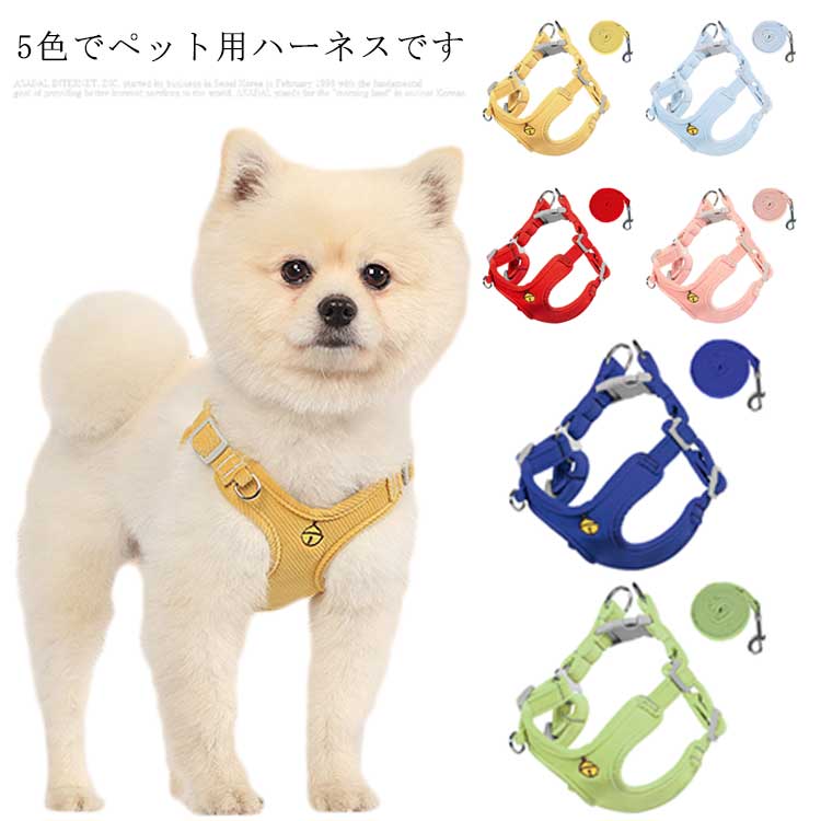 犬 小型犬 中型犬 犬用 犬具 ハーネス 胴輪 リード付き 簡単装着 快適 散歩 お出かけ おしゃれ かわいい 夜間反射 通気 軽量 犬用品 ペットグッズ