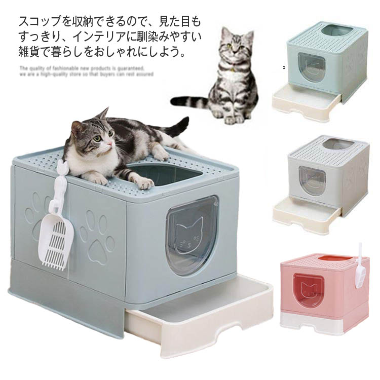 おしゃれ 猫 ブラシ付き 全3カラー フルカバー 折りたたみタイプ 猫トイレ 48.5*38*36.5 ペットトイレ ネコトイレ 飛び散りにくい 猫用品 携帯便利