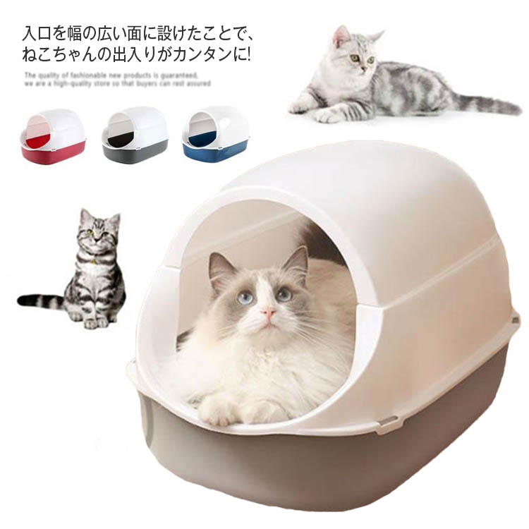 猫 トイレ 51*46*45 キャット マット付き 散らかりにくいネコトイレ 本体 フルカバー 猫トイレ お掃除簡単 トイレ 全3色 ホウスタイプ 飛び散りにくい 大型猫 スコップ付き