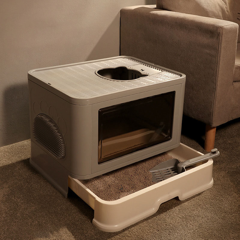 おしゃれ 猫 ブラシ付き 全3カラー フルカバー 折りたたみタイプ 猫トイレ 48.5*38*36.5cm ペットトイレ ネコトイレ 飛び散りにくい 猫用品 携帯便利