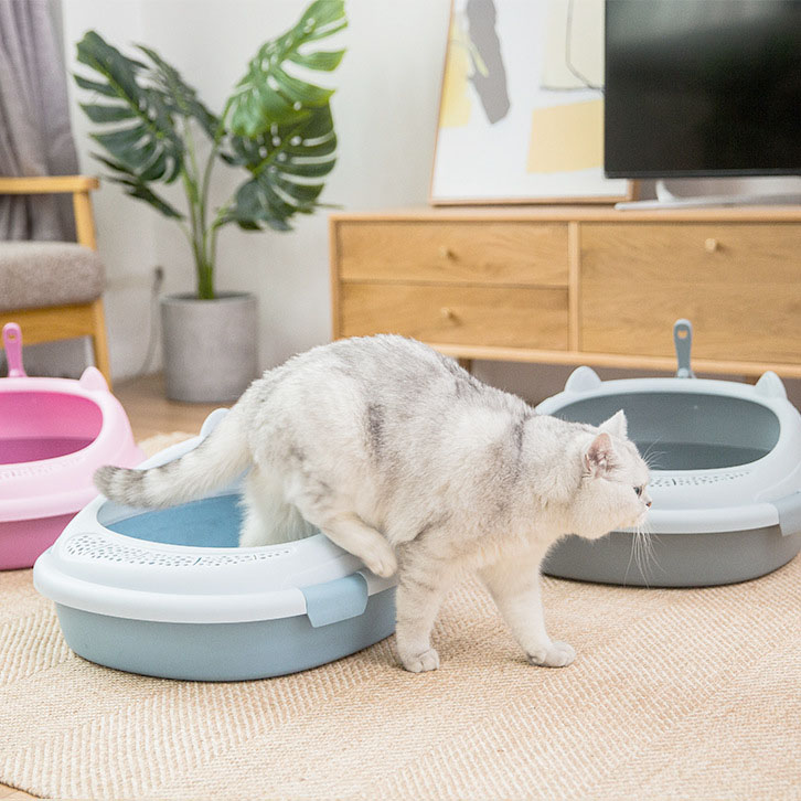 猫 トイレ ネコミミ 本体 猫トイレ お掃除簡単 キャットトイレ 飛び散りにくい 猫トイレ 47*39*19 スコップ付き シンプル 猫耳付き 全3色 散らかりにくいネコトイレ ペットトイレ おし