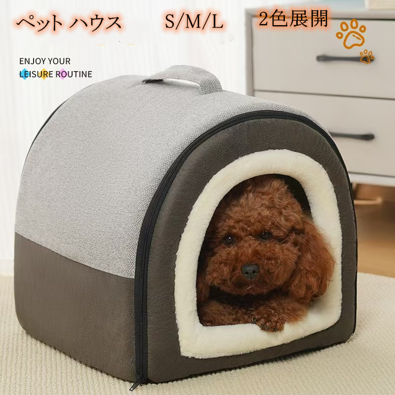 犬小屋 猫ハウス ペット小屋 ペットベッド 犬猫ベッド 秋冬 ふわふわ 洞窟 ドーム型 暖かい 滑り止め 防寒 子犬 猫用 サイズ選択可 クッション付き