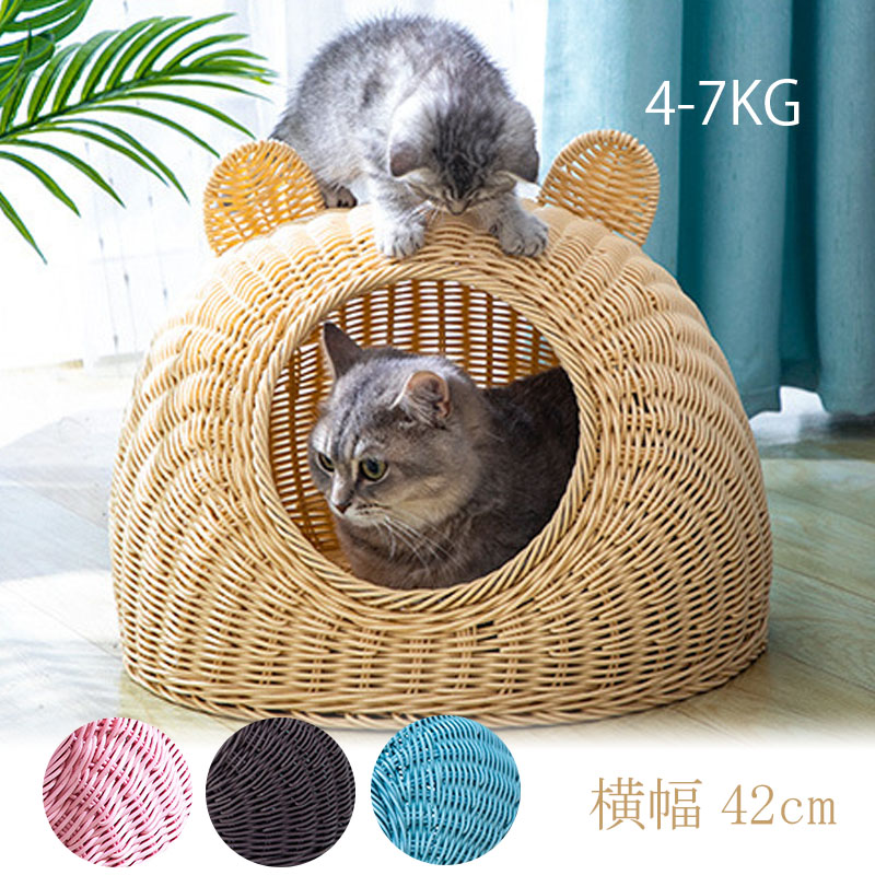 猫 ちぐら 犬 ベッド ドーム 4-7 春夏 猫ちぐら 洗える 猫ベッド キャットハウス かわいい おしゃれ ペットベッド カゴ ラタン風 猫用 ドーム型 ハウス 犬用 ベット ペットベット ペッ