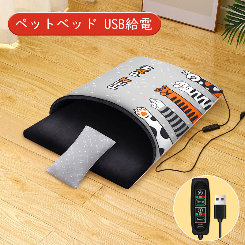 ペットベッド USB給電 枕付き 3段階温度調節 定時 ペットハウス ヒーターマット 省エネ 犬 猫 ペット用品 あったか 犬用品 猫用品 寝袋 ぐっすり眠れる 多機能 洗える ポカポカ 寒さ対策