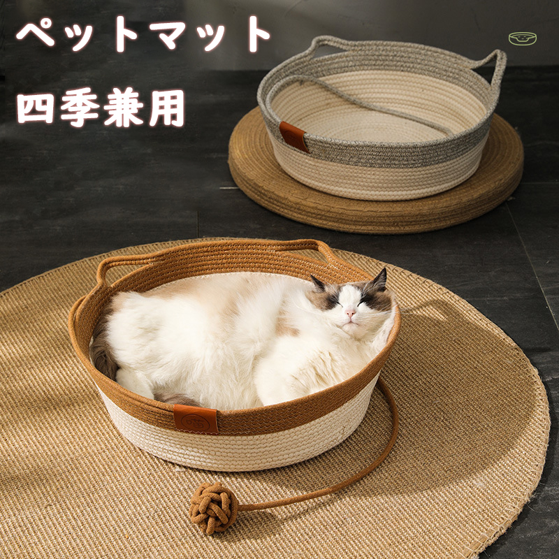 猫ベッドは天然素材で編み上げ、手で作られた安全のロープとして素材、シンプルな円形デザインです ペット ペットグッズ 猫用品 ベッド マット 寝具 ベッド