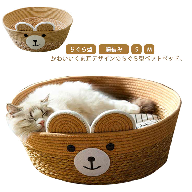 まくら 猫ベッド ペットベッド ねこ 涼しい 籐編み 通気性 天然素材 犬ベッド 夏用 小型犬 ペットマット ちぐら型 インテリア クッション付き オールシーズン ネコ 洗える 爪とぎ マット付き