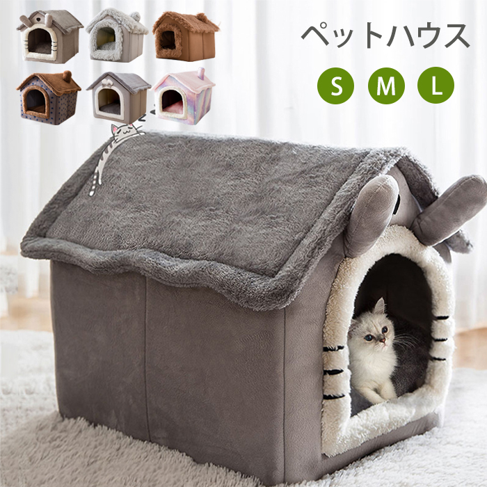 猫ハウス ドーム型 ペットベッドドーム型 秋冬用 ペットハウス 取り外し可能 犬猫兼用 キャットハウス 三角屋根 暖かいハウス ぐっすり眠る ふわふわ 洗える 寒さ対策 ペット用品 猫用 小型犬用 ド