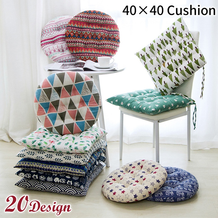 クッション 椅子用 紐付き 2type チェアパッド 四角 丸型 40 おしゃれ 洗える 角型 円型 座布団 座る用 椅子