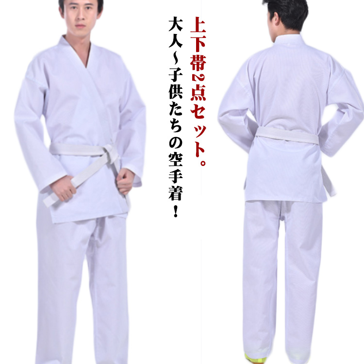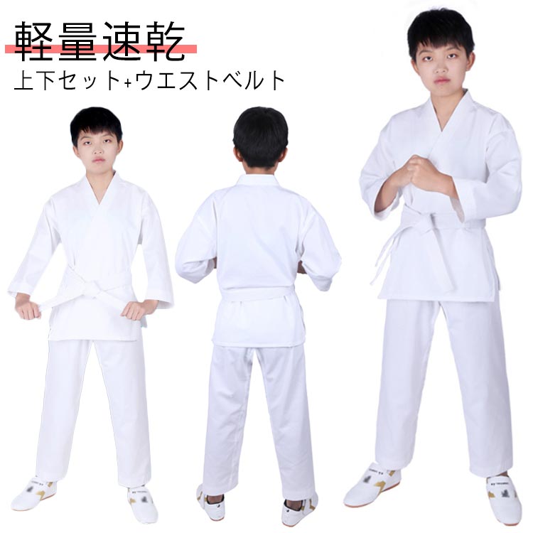 上下白帯 空手道着 伝統派 空手道着 セット 軽量速乾 上下セット+ウエストベルト ズボン 帯スポーツ アウトドア 格闘技 武術 柔道 柔道衣 帯セット