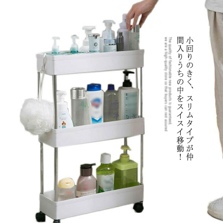 すき間収納 ワゴン カゴ3段 キャスター付き プラスチック 家具 収納 キッチン収納 食器棚 キッチンストッカー 食品ストッカー キッチンすき間収納ワゴン