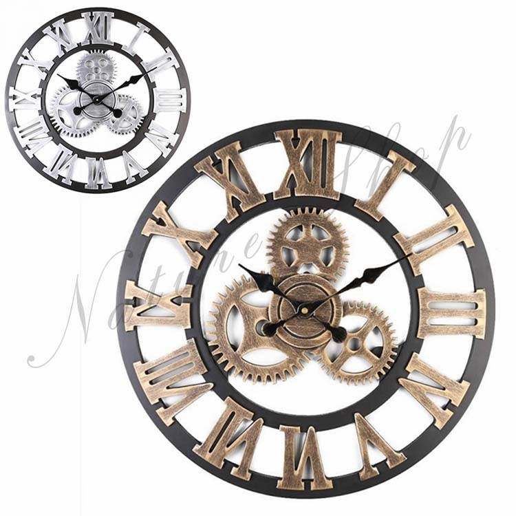 時計 壁掛け時計 歯車 おしゃれ 静音 木製 壁飾り ローマ数字 アンティーク 壁掛け 雑貨 レトロ 北欧風 クロック インテリア お洒落 ウォールクロック 北欧時計 シンプル