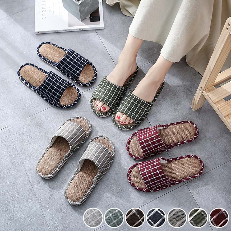 スリッパ チェック柄 部屋履き レディース おしゃれ メンズ ルームシューズ 室内スリッパ リネン カップル 可愛い 軽量 ホームスリッパ 春夏秋 オフィス麻 快適 来客用