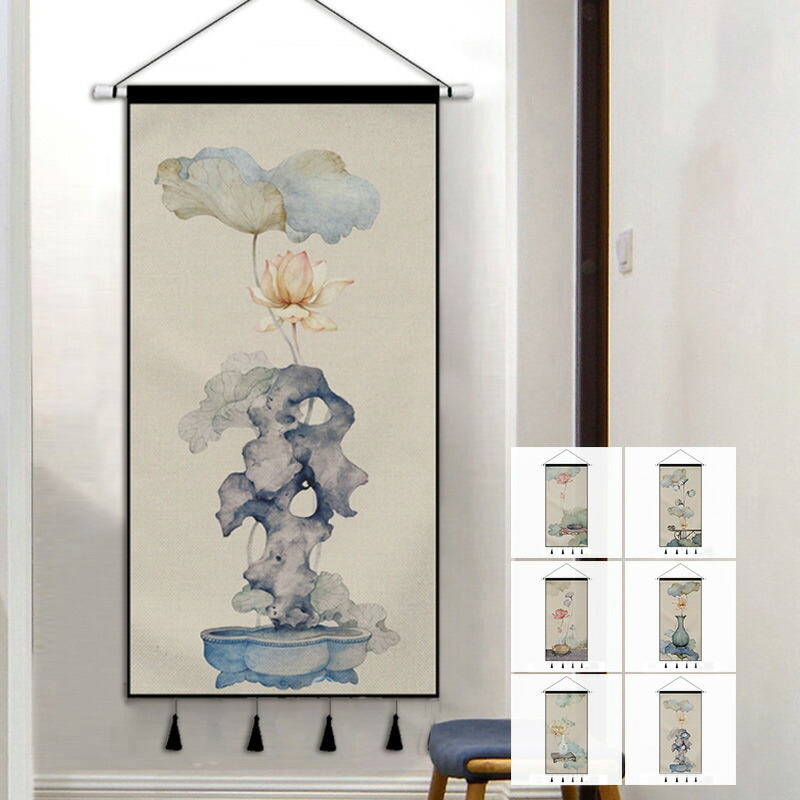タペストリー ウォールデコレーション 中国画 蓮の花 背景布 壁布 壁掛けインテリア 寝具 収納 壁紙 装飾フィルム タペストリー
