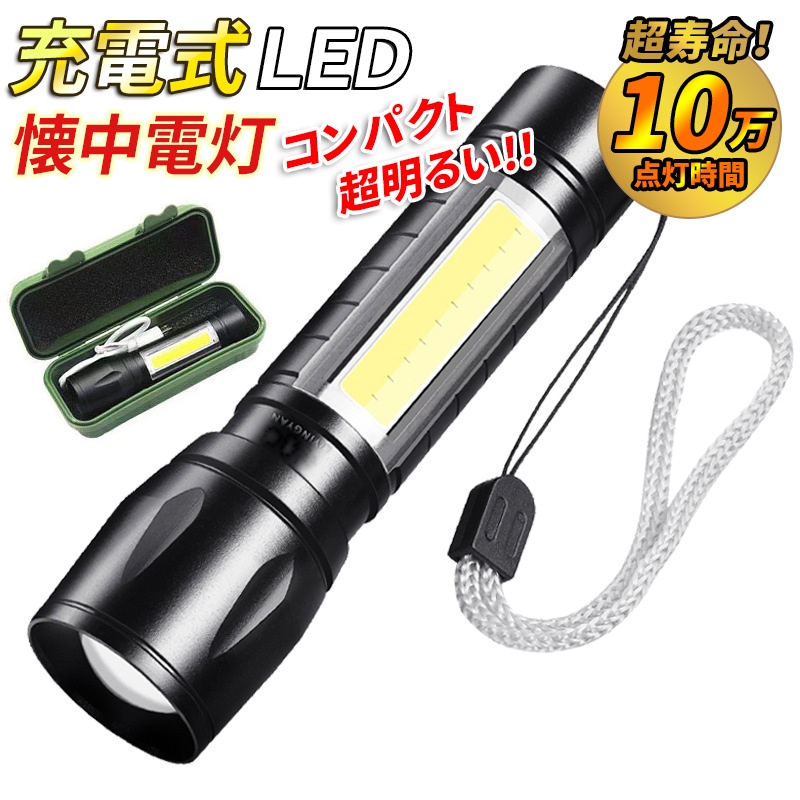 懐中電灯 充電式 LED COB 2WAY USB ハンド LEDライト cobライト ハンドライト フラッシュ 最強 作業用 防災 usb充電 ハンディライト 軽量 キャンプ ワーク 明るい 登山