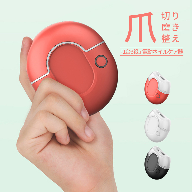 電動爪切り 電動爪削り 充電式 二段階スピート 低騒音 男女兼用 爪磨き 爪ケア 安心安全 低騒音ネイル 選べる3色