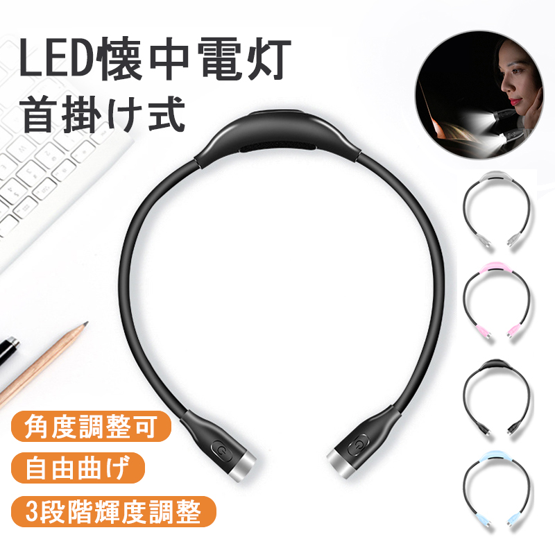 ネックライト ブックライト 首掛け式ライト 式 ハンズフリー 夜読書灯 夜間散歩用 緊急状況用 夜間ジョギング アウトドアランプ用 3レベル輝度調整 自由曲げ