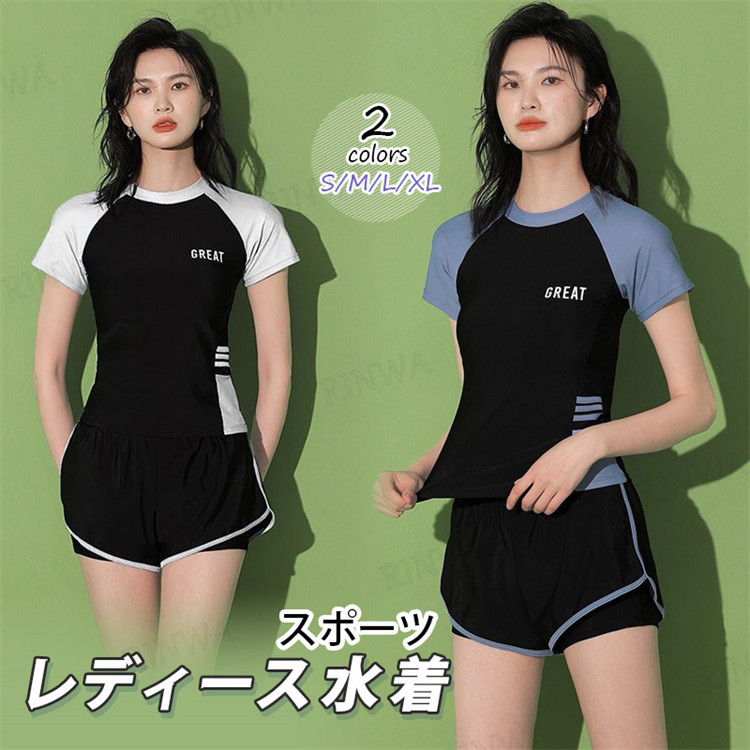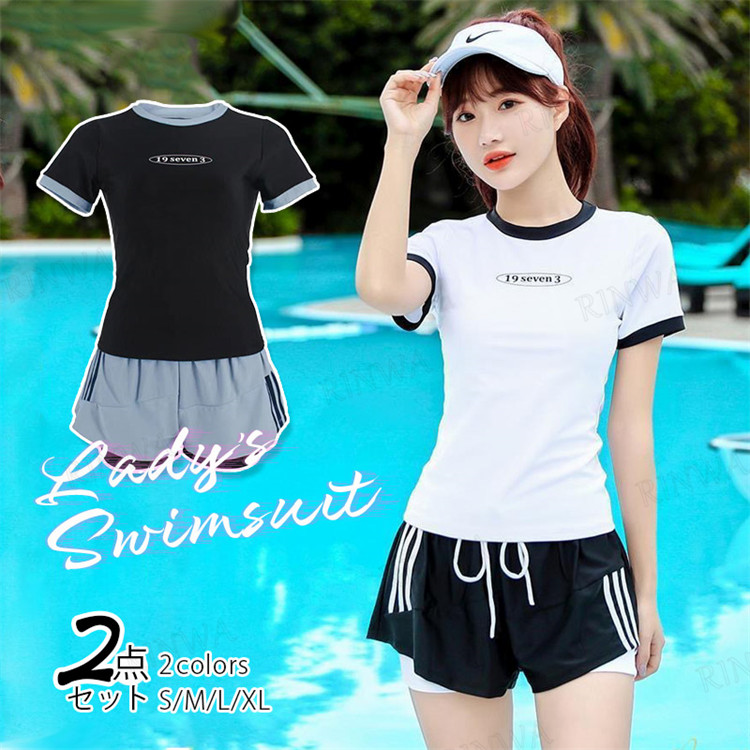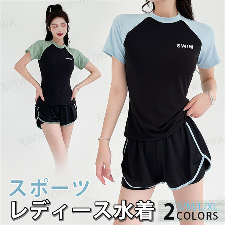 フィットネス水着 日焼け対策に 体型カバー水着 2点セット フィットネス スポーツ かわいい 運動 水泳 海水浴