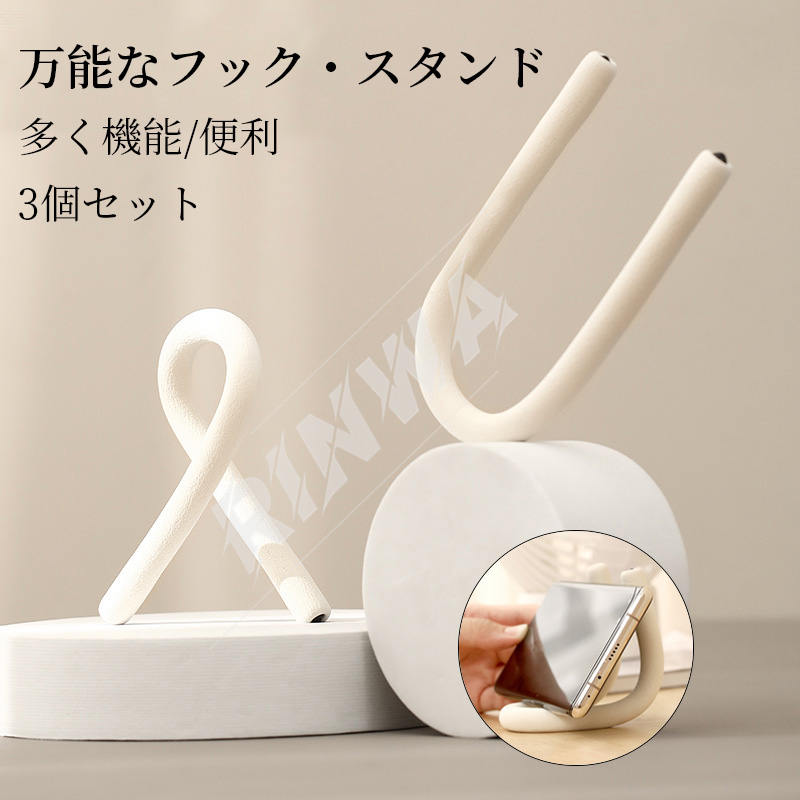 スタンド フック 3個セット 金属製 オフィス机 デスク 勉強机 テーブル強力 リビング キッチン インテリア収納 ベージュ