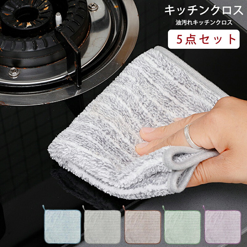 キッチンクロス 5枚セット 30×30 キッチンタイル タオル 布巾 食器拭き 油汚れ マイクロファイバー 吸水 速乾