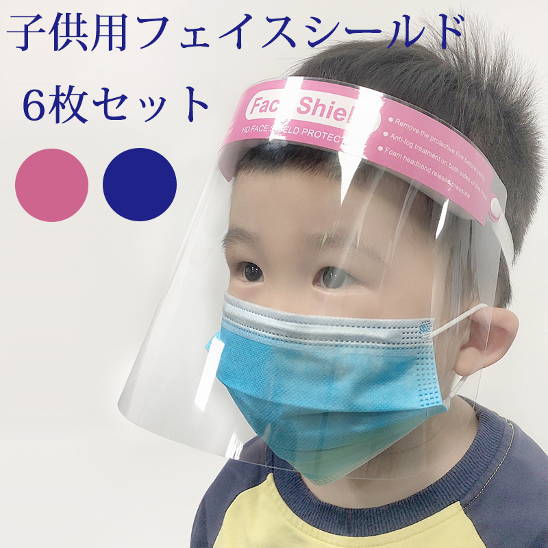 フェイスシールド 子供用 飛沫防止 6枚セット フェイスカバー 透明 フェイスガード 子供サイズ 着装簡