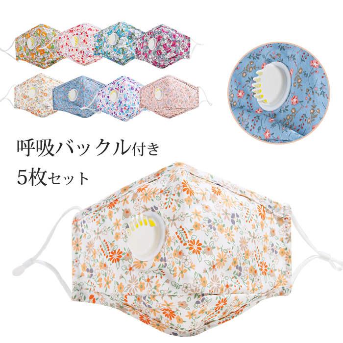 マスク 洗えるマスク 5枚入り 呼吸バルブ 大人 マスク 夏用 マスク 花柄 通気性いい ゴム調整可能 繰り返し使用可能