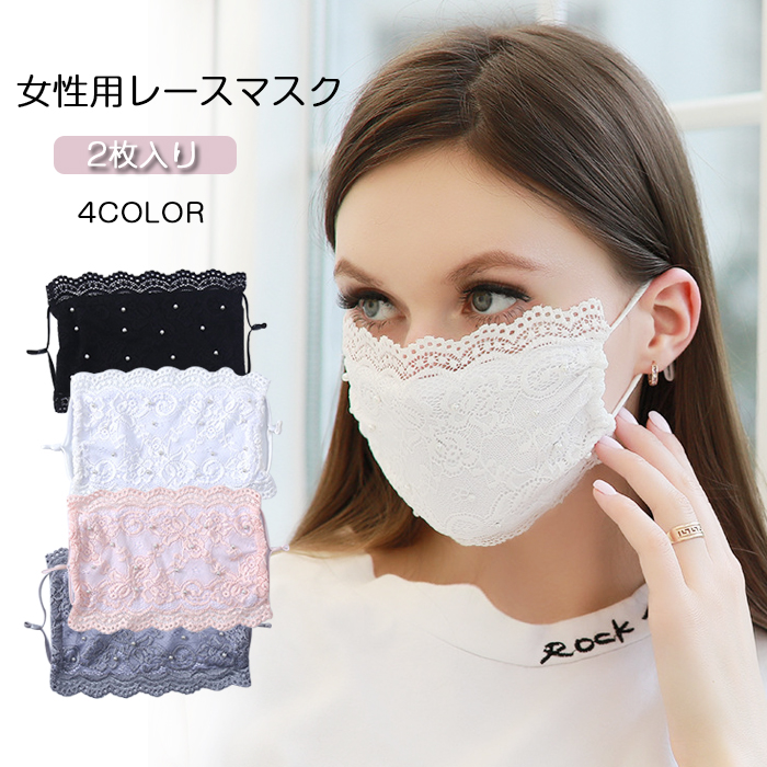 レースマスク レディース マスク 洗える 2枚入り マスク パール付き医薬品 コンタクト 介護 衛生日用品 衛生医療品 衛生マスク フェイスシールド 大人用マスク