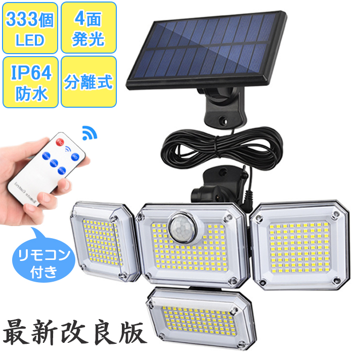 333個LED 六ヶ月保証期間 ガーデンライト LED ソーラーガーデンライト 日本語取扱説明書 4面発光 IP64防水 角度調整 5Mケーブル 2400mAh