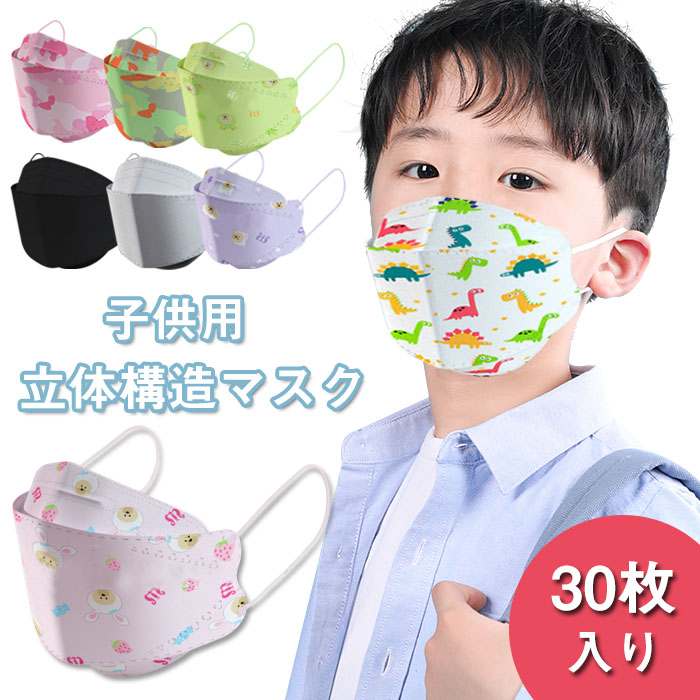 子供用 マスク 30枚セット マスク 快適に呼吸する 個包装 可愛い柄 3-12歳 立体マスク 使い捨て マスク